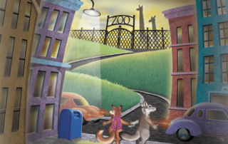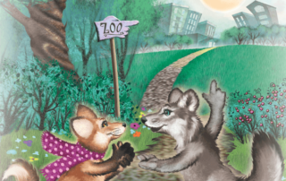 In Frieda Goes to the Zoo, Frieda the Fox and her friend Wendy the Wolf travel to the city to visit the zoo one night. They meet all kinds of interesting animals and have fun getting to know them. When they meet Tina the Tiger, they learn an important lesson about taking care of the places where wild animals live.