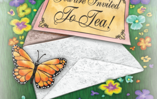 In A Tea Party With Frieda, Frieda and her daughter Fannie are invited to attend a tea party with the author and her mother. They enjoy a pleasant afternoon, drinking tea and eating cake, on top of a hill overlooking the lake. They all help clear up, then play games together before going home. This story teaches children the important of manners, making new friends, and the value of animals as our friends.